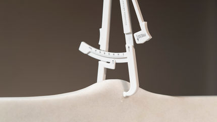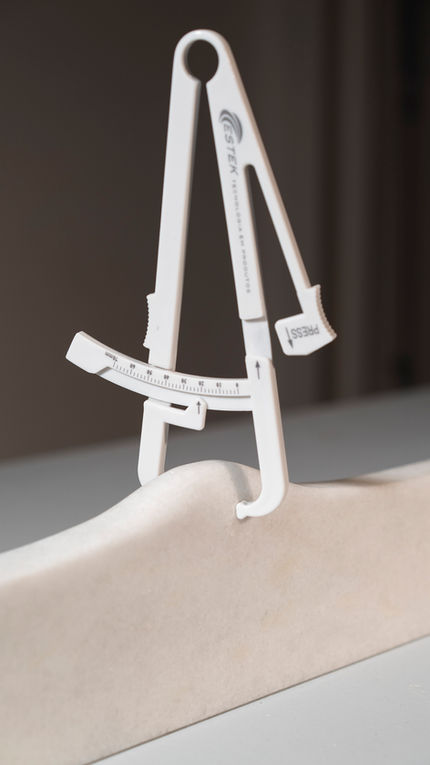 Pinned by an adipometer - a calliper used to estimate the amount of fat by measuring the thickness of a fold of skin - the white geometric shape 1 meter long reveals a body surplus. The relationship between the rational form and the excess indicates the interface between rational thinking and profit. The human mesure imposed on landscape and the accumulation of the economic surpluses through processes of rationalization / colonization.